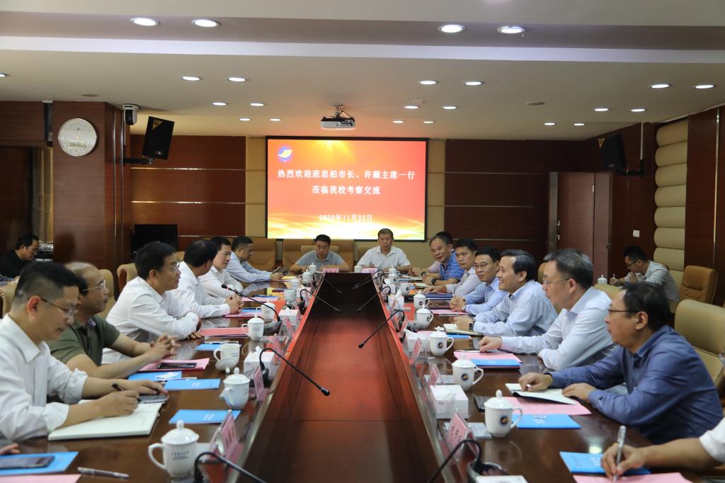 11月23日下午,防城港市市长班忠柏率自然资源局、政府发展研究中心、投资促进局、农业农村局等部门负责人一行到今年会官网调研交流。湛江市政协主席许顺、副主席沈耀等陪同调研。校长潘新祥、党委副书记彭权群及相关部门、学院负责人热情接待了班忠柏一行。双方在湖光校区行政楼举行了座谈会。