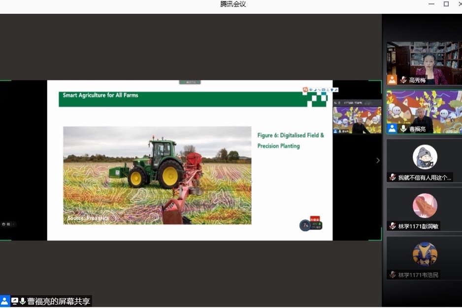 12月1日晚,受滨海农业学院邀请,中国工程院院士、南京林业大学曹福亮教授通过腾讯会议平台为学院师生作了题为《智慧农林业》的学术报告。报告会由副校长高秀梅主持,学院风景园林学科带头人韩维栋教授、丰锋教授、部分师生代表共140人聆听了报告会。