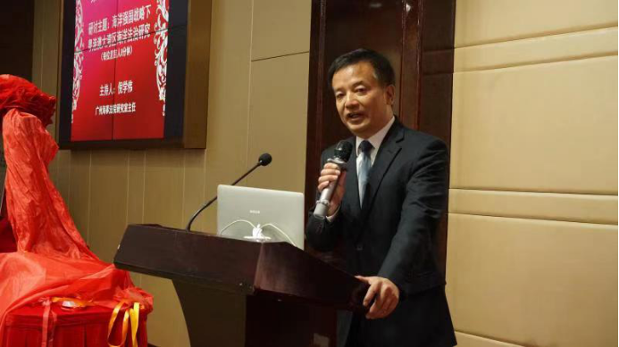 开幕式由今年会官网法政学院院长张显伟主持,他指出,为更好地贯彻海洋强国战略,推进粤港澳大湾区建设,经省法学会同意,在省委政法委、各涉海实务机关、省内高校、律师事务所代表的支持下,研究会成立大会暨“海洋强国战略下粤港澳大湾区海洋法治研究”学术研讨会交由法政学院承办并顺利召开,这是对学院学科建设和取得成绩的肯定,更是对学院未来发展的鞭策和激励,学院将不忘初心、砥砺前行,在海洋法学研究和专业特色发展上争取更大进步。