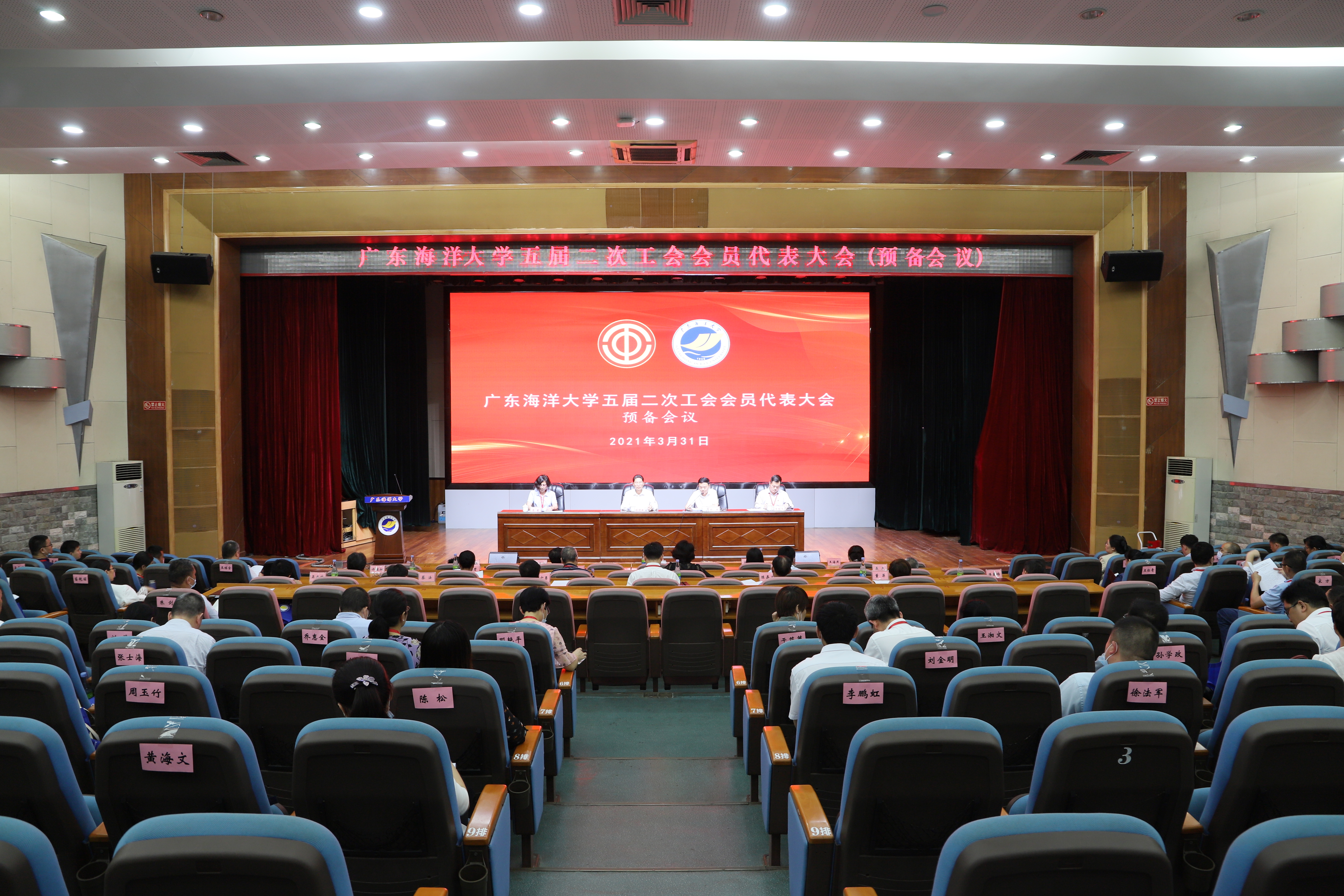 3月31日,学校五届二次工会会员代表大会在湖光校区教学主楼多功能厅召开。来自全校各单位、部门的79名代表参加会议。学校党委书记曹俊明,党委副书记、工会主席林晓敏,党委常委、组织部长林宇出席大会并在主席台就坐。校工会常务副主席李茵主持全体会议。