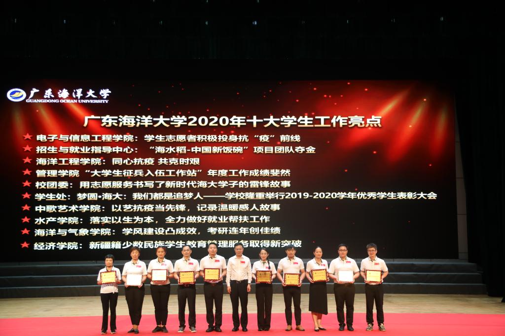 林宇为2020学校十大学生工作亮点单位颁奖并同代表合影