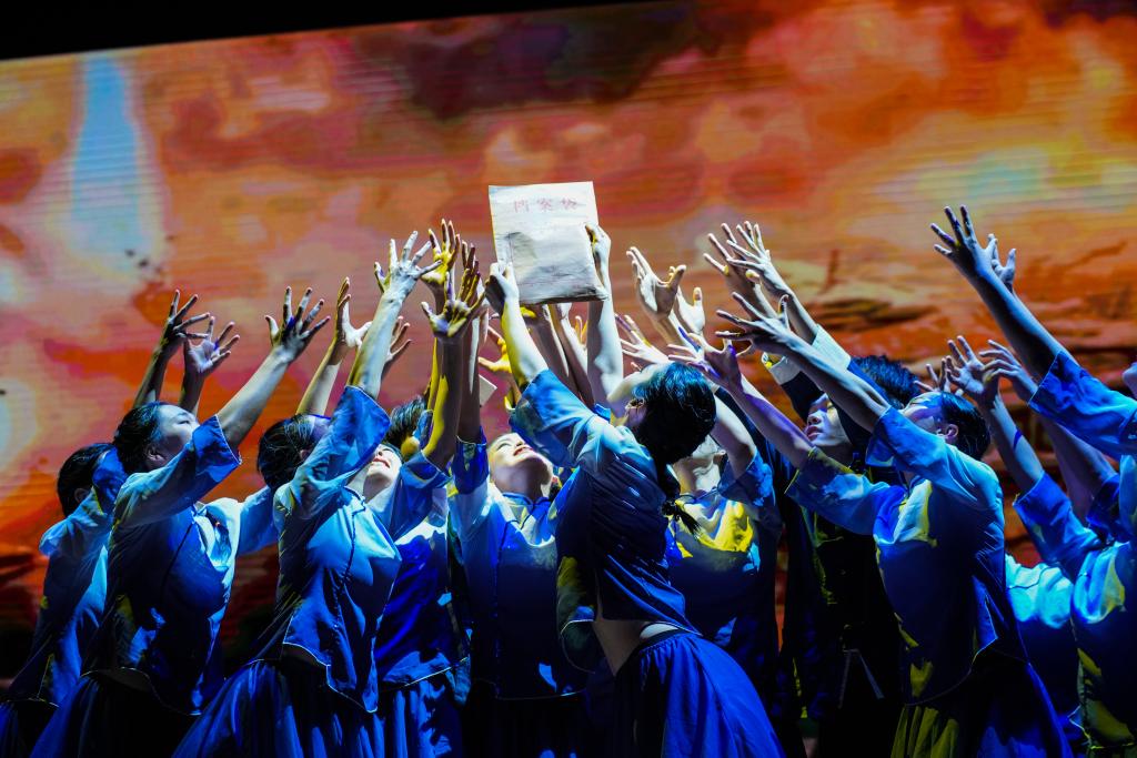 表彰结束后,全体与会人员观看五四文艺晚会。晚会以继承和弘扬五四精神为主题,分“峥嵘岁月”和“筑梦前行”两个篇章。《鲜红的旗帜》舞者们用飘扬的红旗拉开了晚会的序幕,舞蹈《书的流离》、中国歌剧《沂蒙山》选段《爱永在》和话剧《特殊的党小组会》以生动的表演带领观众回顾中国共产党百年峥嵘的历史岁月。朗诵《在奋斗中回望》慷慨激昂,铿锵有力,歌曲串烧《青春奋起》、大合唱《我爱你中国》《少年》将晚会氛围推向了高潮,同学们用高亢的歌声唱响新时代的赞歌,展现新时代青年矢志不渝、逐梦前行的决心。演出最后,伴随着飘扬的团旗,在场全体师生合唱《光荣啊,中国共青团》,晚会在嘹亮的歌声中落下帷幕。