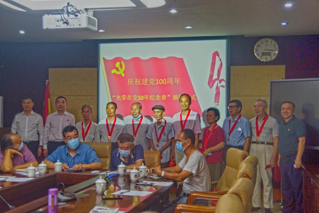 曹俊明、宁凌、林宇与“光荣在党50年”的老党员合影