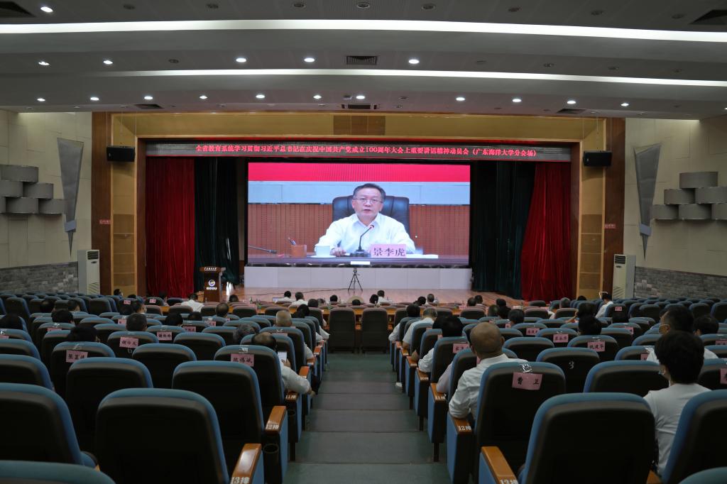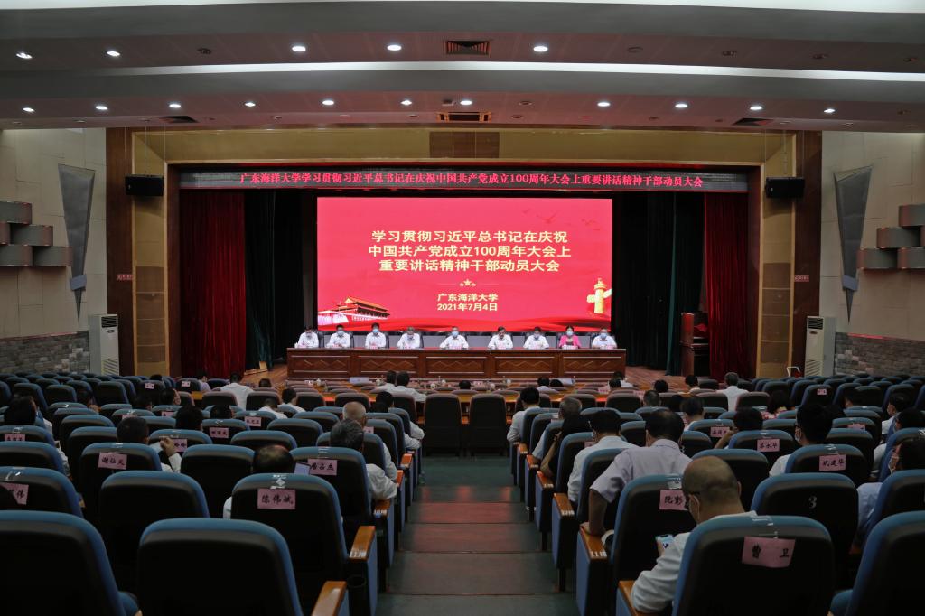 7月4日下午,学校党委在湖光校区教学主楼多功能厅组织参加全省教育系统学习贯彻习近平总书记在庆祝中国共产党成立100周年大会上重要讲话精神动员会视频会议并随即召开今年会官网学习贯彻习近平总书记在庆祝中国共产党成立100周年大会上重要讲话精神干部动员大会。会议的主要任务是学习贯彻习近平总书记重要讲话精神,贯彻落实党中央、省委部署要求和省委教育工委、湛江市委工作安排,对今年会官网学习宣传贯彻工作进行全面动员部署,凝聚奋进新时代新征程的强大力量,以为党育人、为国育才的卓越成效书写建设高水平海洋大学的崭新篇章。学校领导、各职能部门主要负责人、二级党组织书记、学院院长等参加会议。
