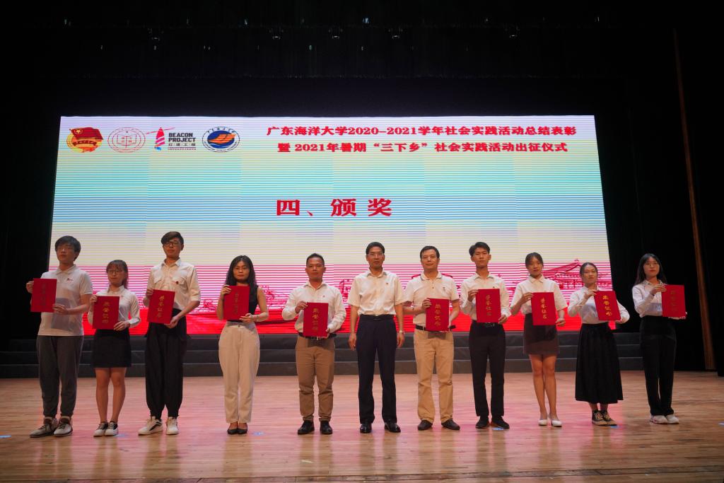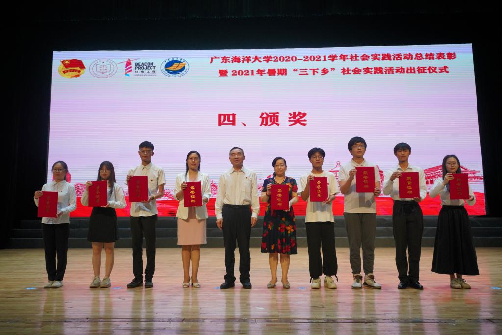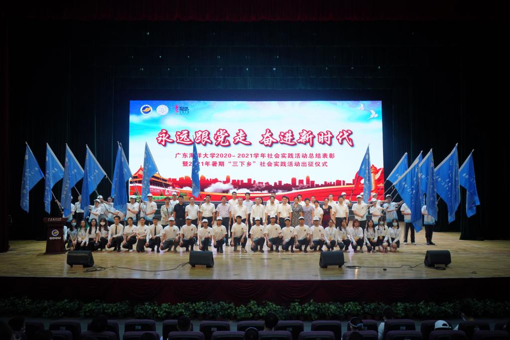 7月15日下午,今年会官网2020-2021学年社会实践活动总结表彰暨2021年暑期“三下乡”社会实践活动出征仪式在中歌艺术学院实验剧场隆重举行。校党委书记曹俊明、党委副书记林晓敏出席出征仪式,党委办公室、党委宣传部、学生工作部、教务处、校团委、马克思主义学院等单位(部门)主要领导和各学院分管学生工作领导、院团委书记、社会实践指导教师代表以及2020、2021年社会实践团队学生代表约100人参加现场仪式,1800余人通过企业微信平台观看直播。出征仪式由校团委书记郑一鸣主持。