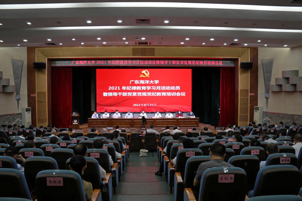 8月31日上午,学校纪律教育学习月活动动员暨领导干部党章党规党纪教育培训会议在湖光校区教学主楼多功能厅召开。会议主题是“学党史悟思想,守纪律铸忠诚”,主要任务是深入学习贯彻习近平新时代中国特色社会主义思想,深入学习贯彻习近平总书记“七一”重要讲话和关于全面从严治党重要论述精神,教育引导党员干部增强“四个意识”、坚定“四个自信”、做到“两个维护”,强化党章党规党纪意识,锤炼忠诚干净担当的政治品格,为学校建设高水平海洋大学作出新的贡献。全体校领导出席会议。校党委书记曹俊明作动员讲话暨专题辅导报告。学校相关领导主持会议并讲话。党委副书记、纪委书记、监察专员彭权群对今年的纪律教育学习月活动作了安排部署。