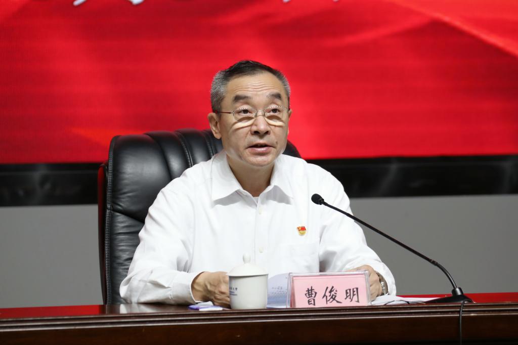 曹俊明强调,要落实主体责任,忠诚履职尽责,努力营造风清气正、干事创业的良好氛围,推动学校重点工作任务落实到位。一要加强部署落实,持续推动党史学习教育走深走实。二要提高政治站位,集中精力抓好巡视整改工作。三要保持高度警觉,毫不松懈地抓好常态化疫情防控工作。四要勇于担当作为,确保学校各项事业发展迈上新台阶。五要坚持对标对表,确保纪律教育学习月活动高质量开展并取得扎实成效。