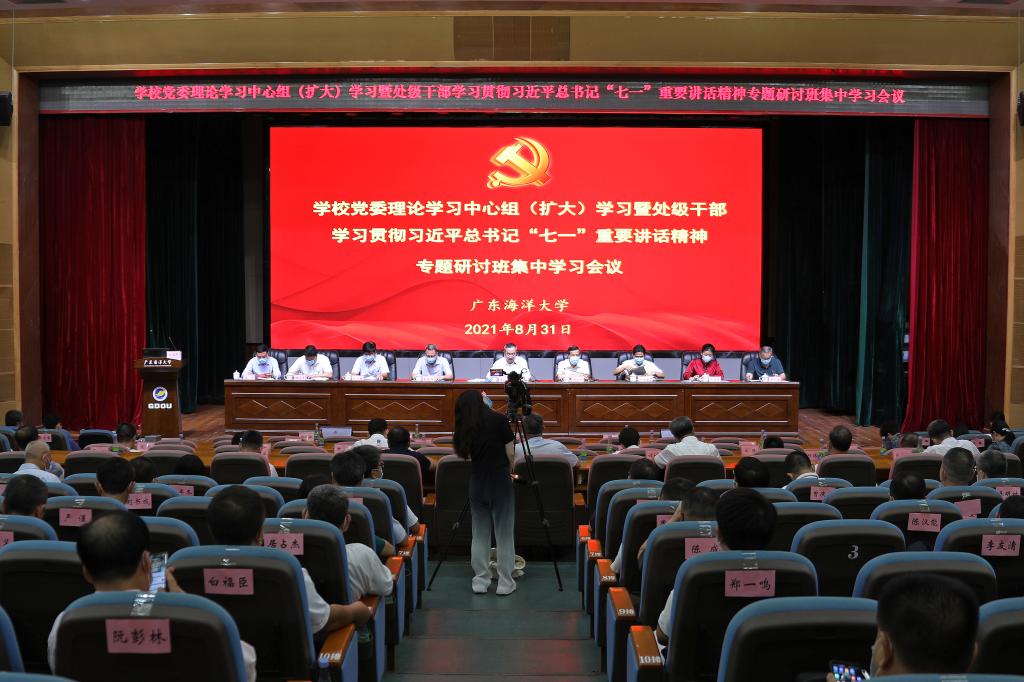 学校相关领导从扎实做好疫情防控和省委巡视整改工作,认真抓好阳江校区开学运行与后续建设,切实加强学校综合统筹与发展规划、人事管理与科技创新、教学与人才培养、对外交流与继续教育、财务审计和资产与招标、基建后勤与保卫、教学辅助、以及各学院工作要点等11个方面,对学校今年下半年的工作进行了部署,明确了秋季学期重点工作的目标任务与要求等。学校相关领导指出,读懂党的百年历史,就要赓续红色血脉,各级领导干部要发挥好示范引领作用,充分认识习近平总书记“七一”讲话精神的重大理论价值和实践意义,结合党史学习教育,把握高等教育高质量发展的大势、规律和机遇,以更高的目标凝聚各方力量,深入思考谋划本单位本部门的重点工作和实施策略,厚植发展新动能、激发办学新活力、塑造竞争新优势,以新担当新作为走好建设国内一流、国际知名高水平海洋大学的赶考路。