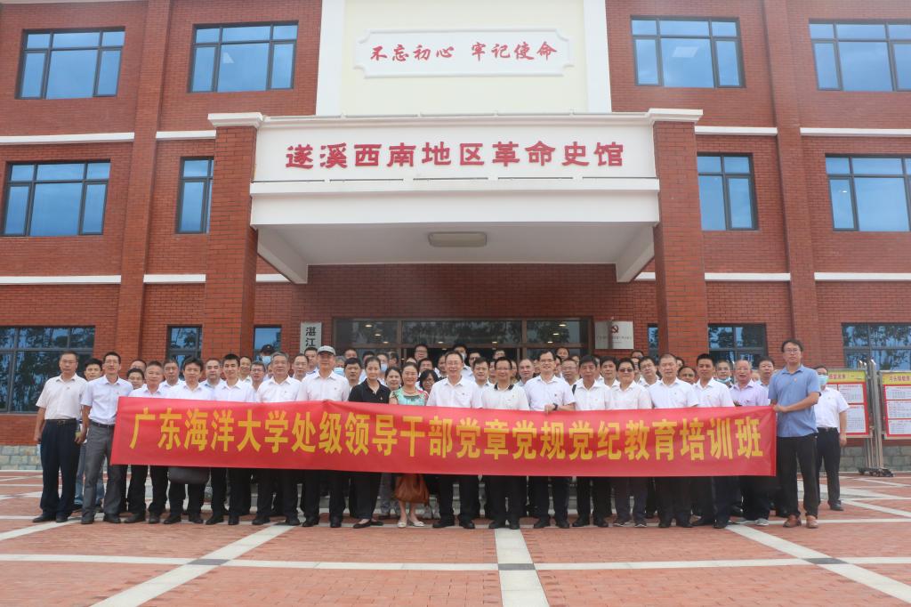 9月16日下午,在学校党委副书记、纪委书记、监察专员彭权群的带领下,学校组织60余名处级领导干部到遂溪西南地区革命史馆开展了瞻仰烈士纪念碑、重温入党誓词、参观革命展馆和聆听党课等教育活动,该活动也是学校处级领导干部党章党规党纪教育培训班的重要内容之一。活动由纪委副书记、纪检监察室主任曾庆新主持。