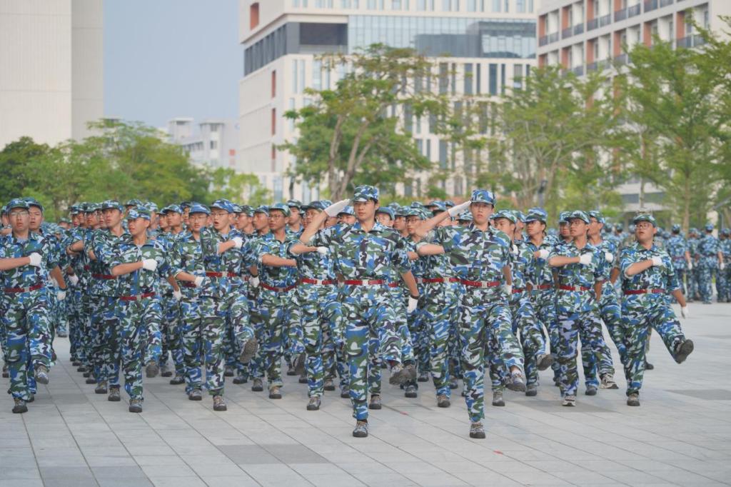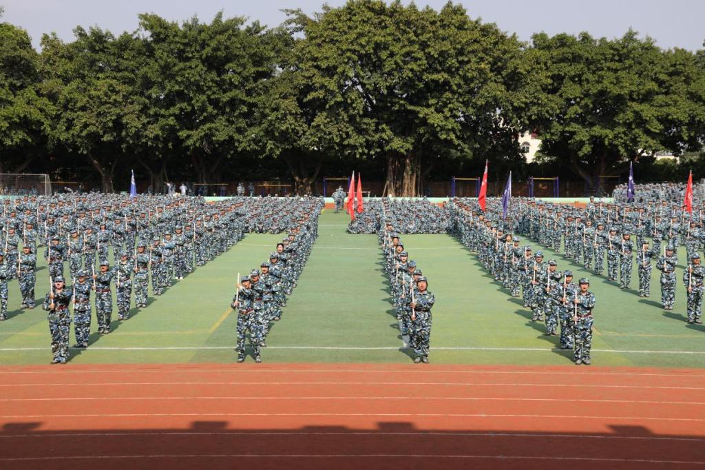沙场秋点兵,学子展雄风。9月29日、30日,学校2021级新生军事技能训练成果汇报暨总结表彰大会分别在湛江、阳江两地校区的湖光东区运动场和锦绣广场隆重举行。学校党委书记曹俊明出席大会并讲话,学校领导彭权群、林晓敏、刘东超、宁凌、林宇出席会议,本次军事技能承训单位湛江市国防教育训练基地军训部部长余书斌、阳江市阳东区人民武装部部长霍永利参加大会并发言,阳江校区管委会和相关职能部门负责人以及各学院党委副书记、全体教官、跟训老师、参训新生等约6000人参加大会,另有4000余名新生在线观看了直播。大会由副校长、军训旅旅长刘东超主持。