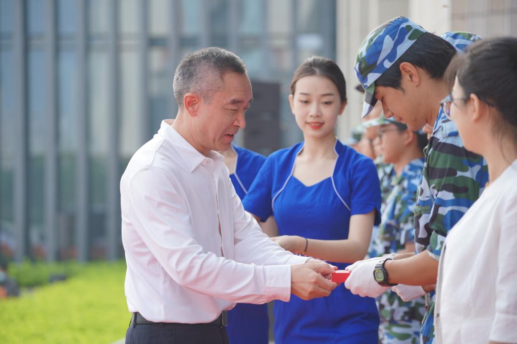 在庄严的国歌声中,大会拉开帷幕。典礼上,学校党委书记曹俊明为新生代表颁发校徽,学校相关领导发表了热情洋溢的讲话。