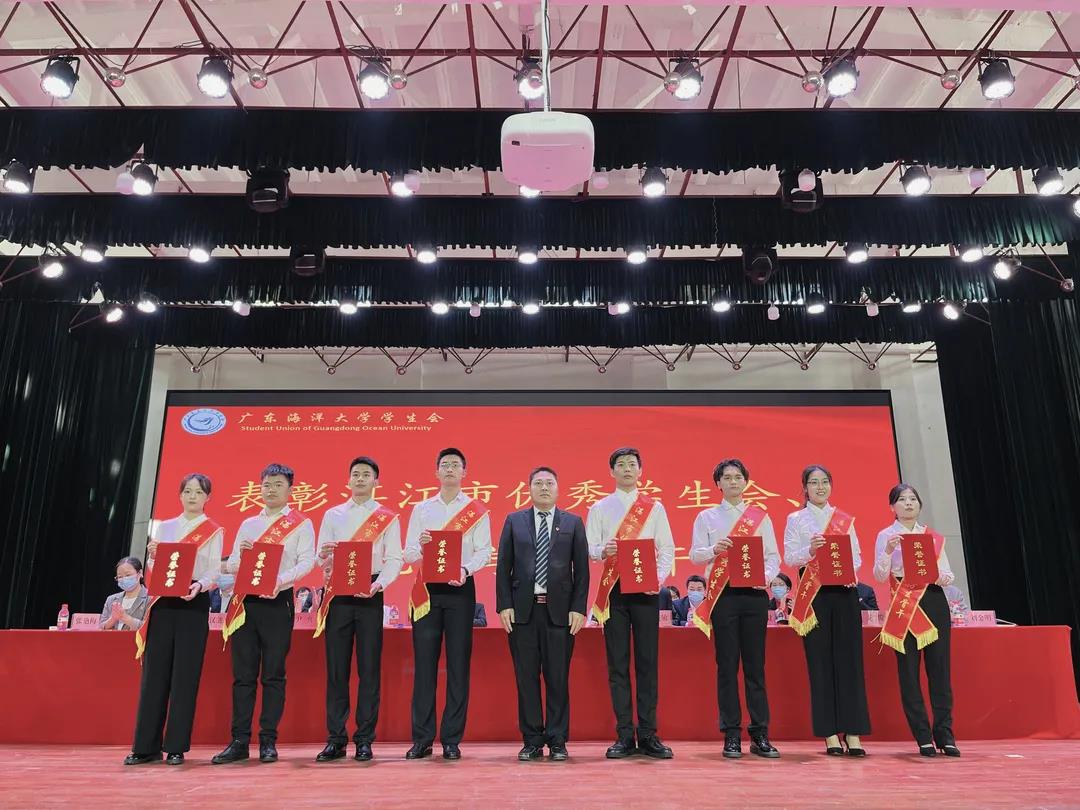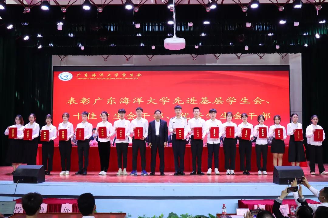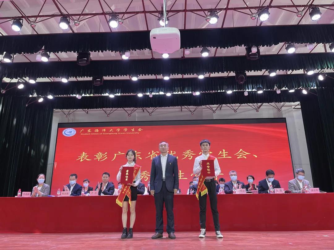 大会对2020-2021年度获得广东省、湛江市表彰的学生会先进集体和个人、2019-2020年度获得学校表彰的学生会先进集体和个人进行了颁奖,曹俊明、陈科全、林晓敏分别为获奖的集体和个人颁奖。