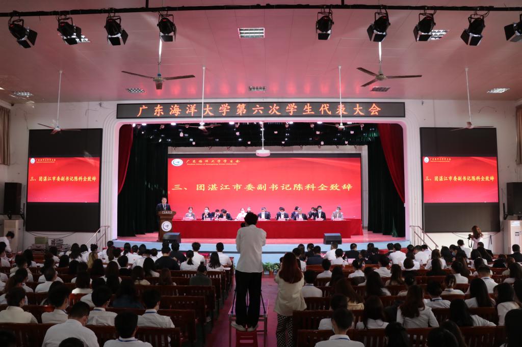 10月24日上午,学校第六次学生代表大会在湖光校区礼堂召开。学校党委书记曹俊明、副书记林晓敏、团湛江市委副书记陈科全出席会议。党委办、党委组织部、党委宣传部、党委学生工作部、党委研究生工作部、校团委、后勤保障处等部门领导及各学院分管学生工作的领导、校团委全体干部、各学院团委书记、学生正式代表、列席代表等共约400余人参加大会。大会开幕式由校团委副书记袁仁广主持。