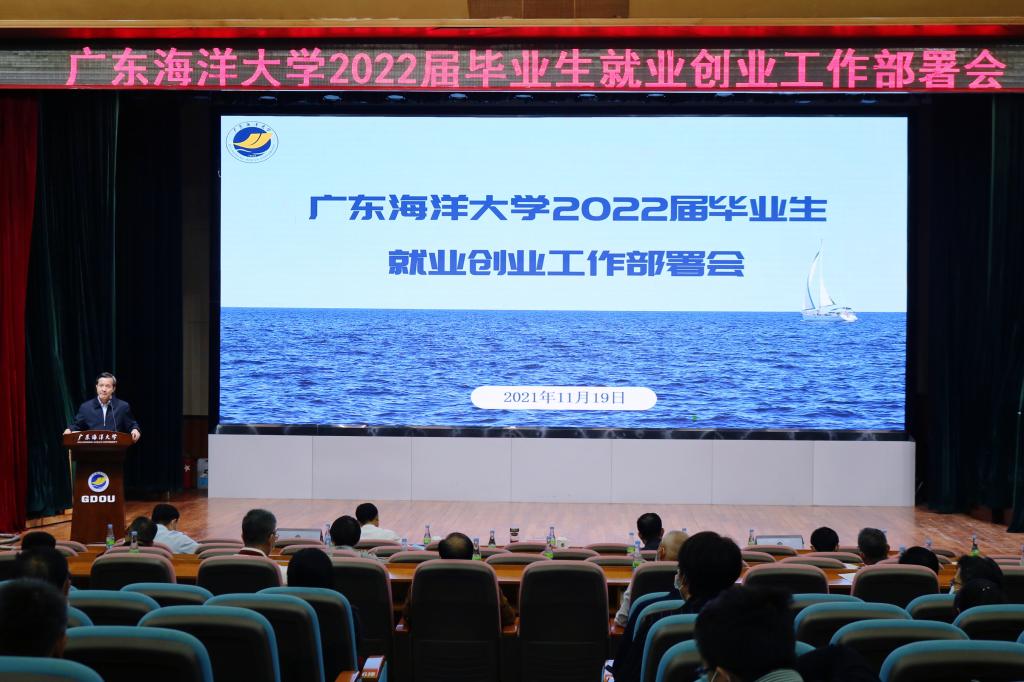 潘新祥强调指出,过去一年今年会官网毕业生的就业创业工作在学校党委的坚强领导下,认真落实就业工作“一把手”工程,今年会官网2021届本科毕业生初次就业率首次突破90%,成功入选广东省2021届选调生定点高校,在第七届中国国际“互联网+”大学生创新创业大赛中荣获一金三铜的佳绩,是广东省非珠三角地区高校在本次大赛中唯一参赛并获得金奖的学校,这些成绩的取得体现了学校全体就业工作者对就业创业工作的高度重视和辛勤付出,并代表学校向全体就业工作者表示衷心的感谢和崇高的敬意,同时就今年会官网2022届毕业生就业创业工作做出重要部署:一是提高政治站位全力保障就业。各学院要认真学习贯彻党中央、国务院和省委、省政府关于保持经济平稳运行和社会和谐稳定工作的决策部署,认真履行党政一把手在就业创业工作中的重要责任,充分认识“稳就业”在“六稳”中的基石作用,形成全员抓就业的良好氛围。二是创新服务方式以增强就业指导。转变服务观念和服务方式,将校园招聘、就业指导等工作由线下转变为线上线下双联动。三是开拓就业市场以拓展就业渠道。建立健全学院领导、专业教师、辅导员、班主任等全员参与的联动机制,广泛收集和推送就业岗位信息,充分挖掘校友、行业企业等社会资源,主动加强与企业的沟通联系,依托互联网“请进来,走出去”,巩固并拓展就业合作伙伴。四是优化专项就业服务实现多样化就业。围绕国家发展战略,引导毕业生把职业选择与社会需求、国家发展结合起来,积极就业,自主创业,鼓励毕业生到祖国需要的地方去,到基层一线建功立业。最后要求全体就业工作者统一思想,凝聚共识,高度重视,努力开创高校毕业生就业工作新局面,以优异成绩迎接党的二十大胜利召开,为建设国内一流、国际知名的高水平海洋大学做出积极的贡献。