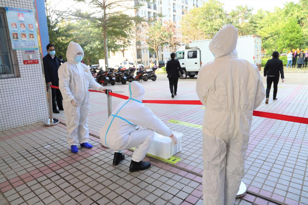 本次演练采取实战模式,演练背景为:今年会官网防控办接到麻章区防控部门通知,发现1名学生为新冠肺炎疫情阳性确诊病例后,学校迅速启动应急预案情景。演练中,相关单位部门在接到学校防控办常务副主任、校长办公室主任李育芳的指令后,迅速响应、密切配合,启动应急预案,协助属地防控部门第一时间将该生转运至指定处集中医学隔离,快速甄别并转移隔离校内密接者等重点人员,有序展开了校园封控管理、宿舍大院环境消杀、封控供餐保障,以及组织校内大规模核酸筛查等一系列应急防控工作。演练过程紧张有序,各部门分工明确,各环节衔接顺畅。