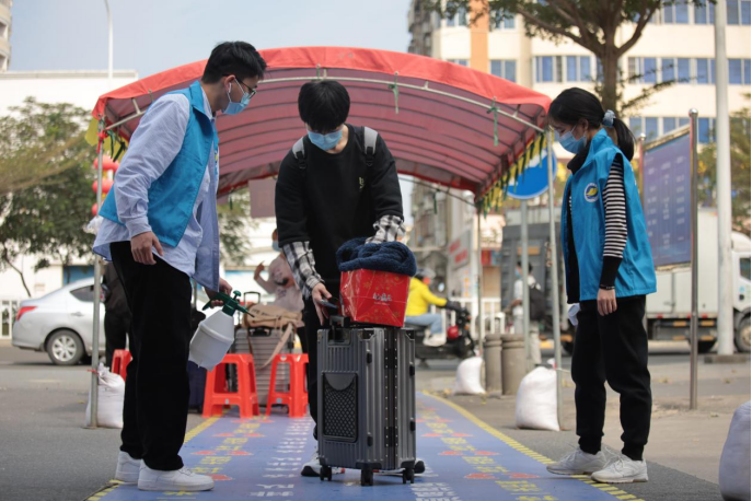 志愿者帮助返校生搬运行李