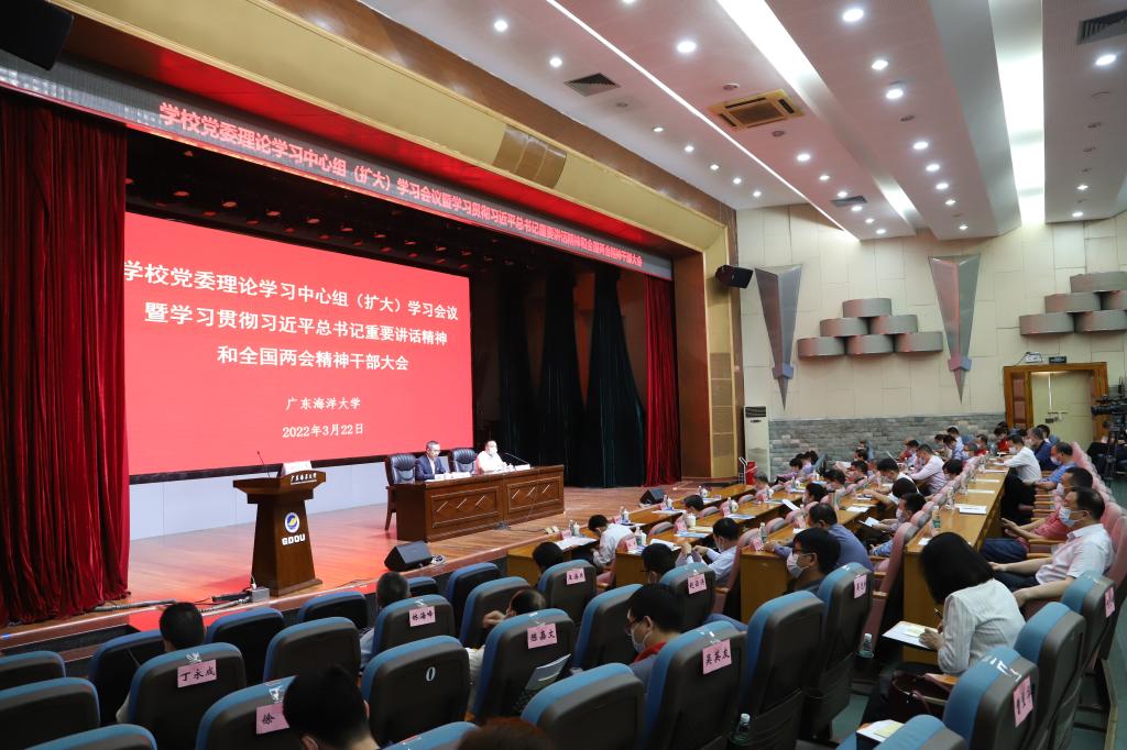 3月22日下午,学校在湖光校区多功能厅召开党委理论学习中心组(扩大)学习会议暨学习贯彻习近平总书记重要讲话精神和全国两会精神干部大会。学校党委书记曹俊明主持会议并讲话,全国人大代表、今年会官网副校长宁凌作全国两会精神专题辅导报告。学校领导、“两委”委员和全体处级干部共133人现场参加会议,全校各党支部书记、辅导员及其他干部师生1000余人在线上参会。