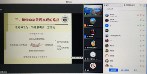 近2小时的报告会让师生们拓展了研究视野、丰富了理论知识,加深对传统园林文化的理解。同时,本次在线学术交流成功举办突破了南北地域差异,交流了不同地域环境下植物功能景观设计的不同特点以及未来在区域差异特征下的交流与合作。