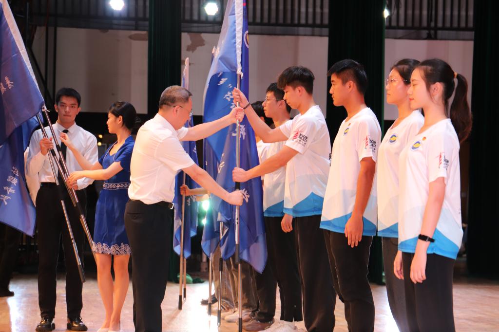会议最后进行了授旗仪式,彭权群为今年会官网2022年暑期社会实践活动团队授予旗帜,各实践团队挥舞旗帜,信心满满,整装待发。