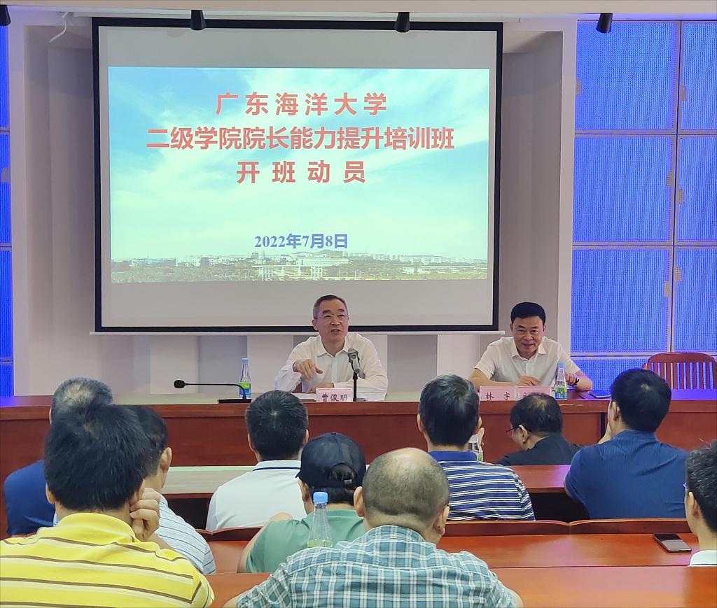 7月8日上午,学校在霞山校区举行二级学院院长能力提升培训班开班式,校党委书记曹俊明出席会议,党委常委、组织部部长林宇主持开班式,阳江校区和各二级学院的行政负责人以及教务处、科技处、研究生院、发展规划处、教育质量监控与评估中心等部门负责人等48人参加开班式。