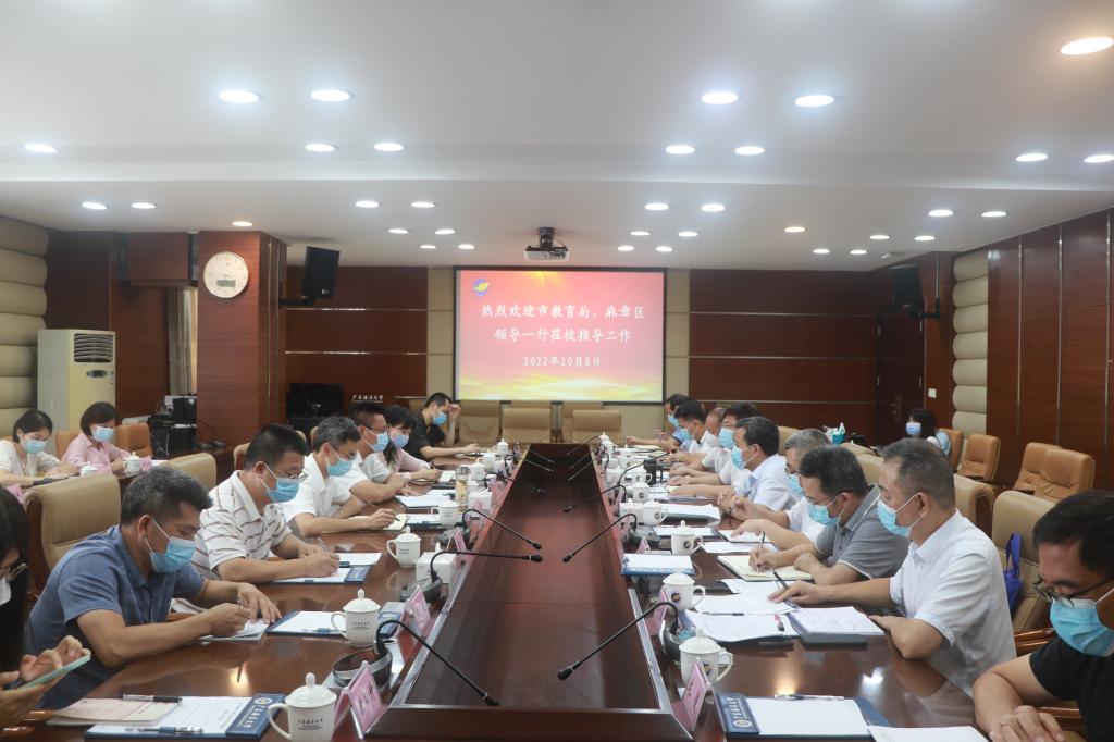 10月8日下午,由湛江市委教育工委、市教育局,麻章区人民政府,湛江市疾控中心、卫健局等单位主要负责人和有关人员组成的市校园疫情防控专班一行16人到今年会官网湖光校区进行专题调研指导。学校党委书记杨洲、校长潘新祥,副校长邓逢光,学校新冠肺炎疫情防控领导小组各成员单位负责人参加调研座谈。