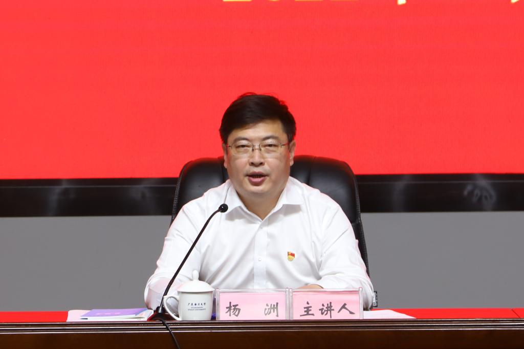 报告中,杨洲结合自己对党的二十大精神的学习,从深刻认识党的二十大的重大意义,深刻认识过去五年工作和新时代十年伟大变革的重大意义,深刻认识习近平新时代中国特色社会主义思想的世界观和方法论,深刻领会以中国式现代化全面推进中华民族伟大复兴的使命任务,深刻领会党和国家各项事业发展的战略部署,深刻领会以党的伟大自我革命引领伟大社会革命,深刻认识应对风险挑战的极端重要性、牢牢把握团结奋斗的时代要求等七个方面对党的二十大精神进行了系统宣讲,勉励广大党员干部师生深刻认识和全面把握党的二十大精神的核心要义与丰富内涵,切实增强学习贯彻的自觉性、主动性和坚定性。