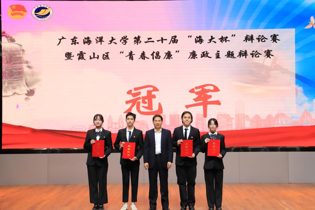 经过激烈地角逐和评委们共同商议,最终,海洋工程与能源学院辩论队荣获冠军,文学与新闻传播学院辩论队荣获亚军,文学与新闻传播学院一辩王妍琛同学荣获总决赛最佳辩手。与会领导和评委为获得辩论赛冠、亚军的队伍和最佳辩手的同学等颁了奖。