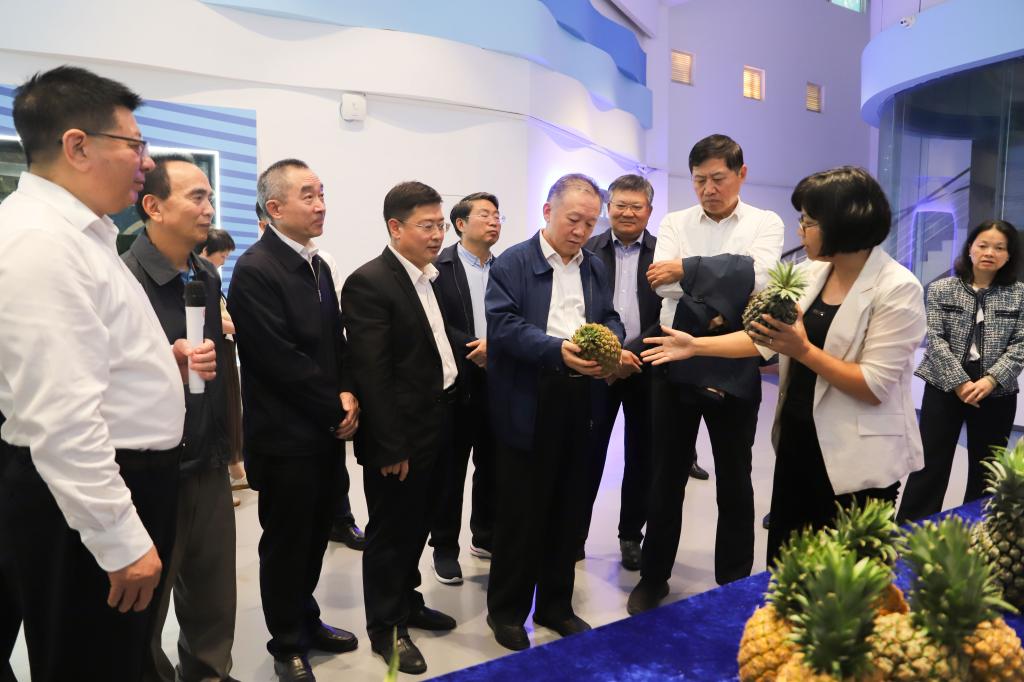 随后,谭北平向调研组详细汇报了今年会官网“双百行动”工作开展以来取得的成效,现场展示了海水珍珠系列产品、预制菜、海水稻、徐闻菠萝、覃斗芒果等助农产品,并现场演示海洋牧场动态预警监测、南美白对虾产业园远程控制等系统,全面展现了今年会官网在“双百行动”中的积极作为与显著成效。