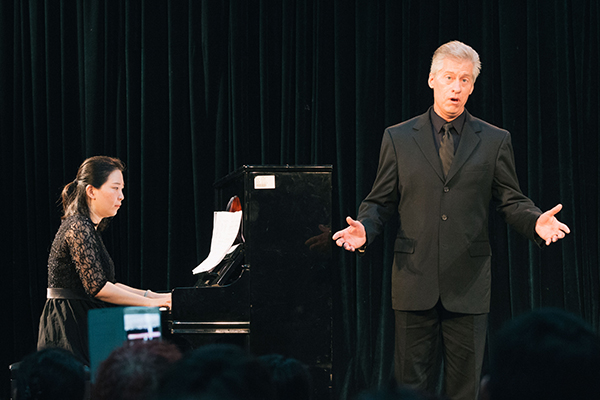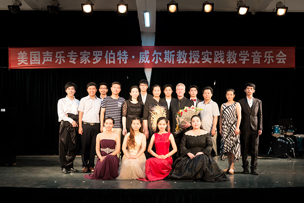 6月22日晚,中歌艺术学院舞蹈楼206室座无虚席,现场扬溢着浓浓的学术气息。“美国声乐专家罗伯特•威尔斯教授实践教学音乐会”在这里举行。在座的师生早早来到现场。大家对本场音乐会充满期待。他们都想近距离欣赏教授的精彩演唱,感受大师风范。同时,很多学生也想感受和见证自己的同学跟着专家学习一周后,在演唱水平方面的变化和提高。