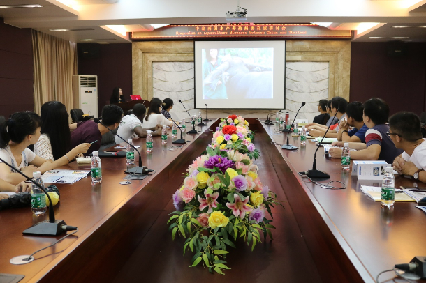 6月8日,Wanna 博士在湖光校区水产楼216室作了题为《Common diseases in Thailand aquaculture, how to manage? (泰国水产养殖中的常见病害及其防治)》的学术报告。来自水产学院部分教师、研究生、本科生参加,报告会由夏立群副教授主持。Wanna 博士用精准生动的语言,从病毒感染、细菌感染、真菌感染等5个方面就泰水产养殖中常见的病害类型、临床特征及其防治措施作了系统介绍。报告会互动热烈,Wanna博士还给参加的部分师生赠送了自己研发的科技产品。