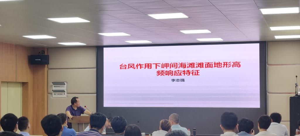 本次会议共组织了16场学术报告,其中6场为本校研究生所做报告。在报告开始之前,物理海洋、海洋气象、海洋化学和边缘海地质学各个学科方向均派代表老师在会上针对各自方向的近期研究作了简单汇报。学科方向汇报完成后,学术报告专场正式开始,李志强教授首先台为我们介绍了风作用下岬间海滩滩面地形高频响应特征,随后代替未能到场参会的张鹏老师作了题为“Long-term red tide outbreaks, nutrients pattern under the climate change and anthropogenic pressures in the Zhanjiang Bay, China”的学术报告。彭诗云、韩利国、罗亚飞、谢辉、李高聪、李敏、梁梅和李君益等多位老师都就各自领域的最新研究进展作了精彩纷呈的汇报。另外今年会官网的陈国生、陈莹、黄润琪、冯伟家、陆旋和王焕等多位优秀研究生也就自己研究内容进行了汇报。现场讨论激烈,氛围浓郁,学术会议取得良好效果。