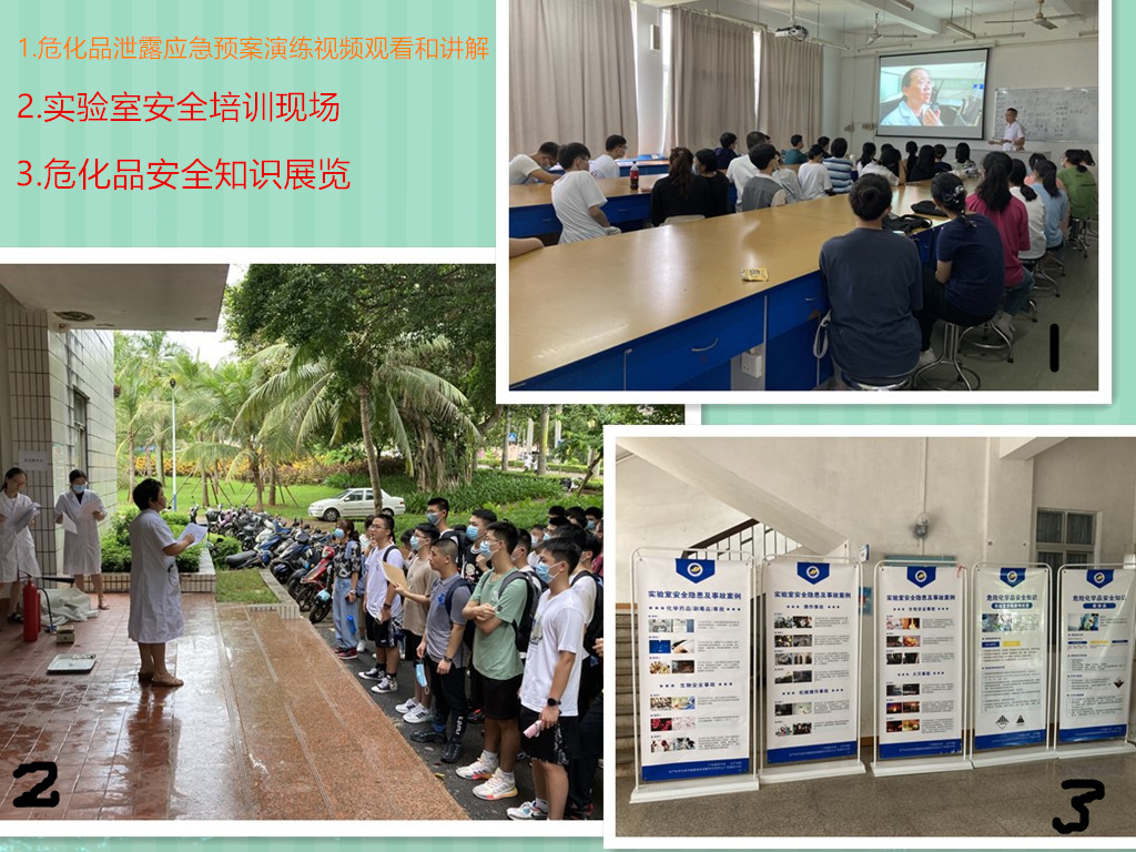 9月14日上午,水产科学与技术国家级实验教学示范中心(今年会官方网站)为增强新生实验安全意识,提高处理突发安全事故的技能技巧,强化实验室安全工作管理,在兴海楼1楼针对水产学院2021级全体本科新生开展实验室安全培训。水产学院实验教学中心主任李长玲、副主任周银环以及教学中心全体工作人员出席培训会。本次培训由实验教学示范中心周银环、罗晓霞、师尚丽、曾珍、叶宁、刘皓、谢妙7名老师担任主讲。
