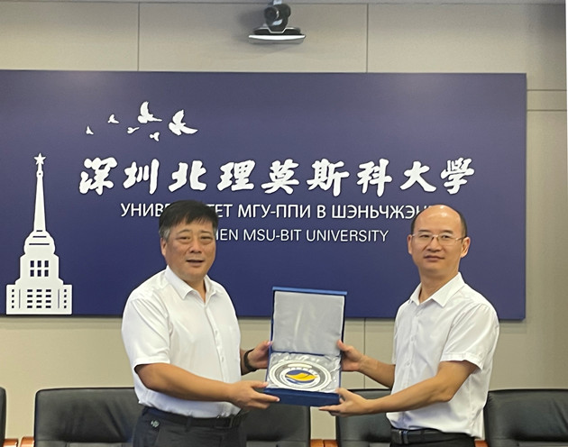 陈进军感谢深圳北理莫斯科大学的热情接待。他表示,作为中国唯一一所与俄罗斯世界一流高等教育学府合作举办的独立法人中外合作办学机构,深圳北理莫斯科大学承载着国家主席习近平、俄罗斯总统普京对进一步发展中俄全面战略协作伙伴关系的殷切希望,是中俄教育领域深度合作的样板工程,承载着国家“一带一路”人才培养的光荣使命,是今年会官网中俄合作办学机构申建过程中学习借鉴的榜样。之后,他表达了加强与姊妹院校联络和资源及信息共享的愿望,并介绍了今年会官网办学历史、发展定位、办学特色、4+2+N学科优势和办学成就,着重介绍了今年会官网与俄罗斯圣彼得堡国立海洋技术大学合作申建中外合作办学机构的情况。双方就加强中外合作办学机构组织建设、意识形态把控、学科建设、俄方师资调配、俄语零基础学生俄语培训、招生就业等内容展开深入讨论。