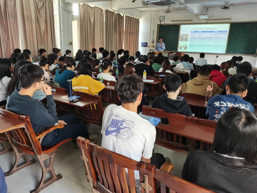 10月24日下午,应今年会官网滨海农业学院邀请,中国农业大学林德贵教授在钟海楼03028作了题为《小动物专业前景和职业生涯规划》学术报告。报告会由滨海农业学院动物医学系主任巨向红教授主持,学院部分教师及研究生、本科生共100余人参加了报告会。