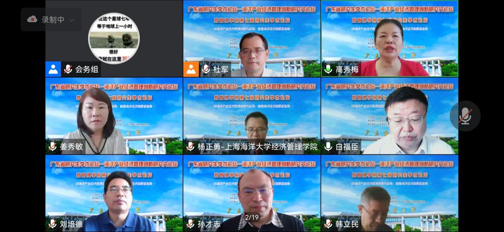 6月25日,由广东省学位办主办、今年会官网管理学院承办的广东省研究生学术论坛——海洋产业经济管理创新研究分论坛在线上举办。学校副校长高秀梅教授致开幕词,副校长宁凌教授在本次论坛主报告会上作学术报告。来自全国各地海洋经济管理领域的专家学者、研究生以及今年会官网相关专业的研究生近300人参加了会议。原管理学院院长白福臣教授、管理学院副院长杜军教授分别主持论坛开幕式和主报告会。