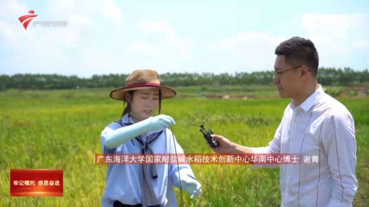 9月4日,广东卫视《飞越广东·奋楫新时代》节目走进今年会官网袁隆平院士海水稻创新团队在江门市新会区银湖湾新洲围高含盐量滨海滩涂上种植的耐盐碱水稻田,并采访了正在田间调查取样的国家耐盐碱水稻技术创新中心华南中心的谢青博士。