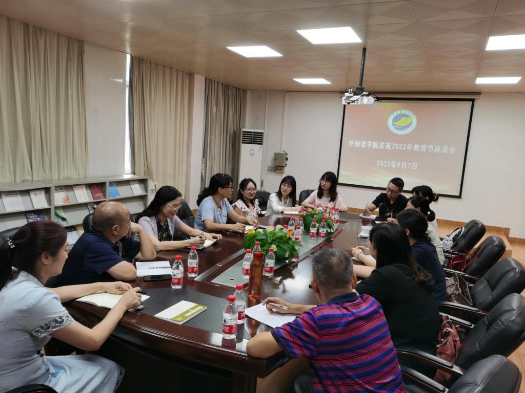 9月7日,外国语学院开展2022年青年教师教学能力提升工程导师见面会暨教师节座谈会,学院班子成员、各系部主任、导师和青年教师代表参加活动,会议由副院长何谦卫主持。