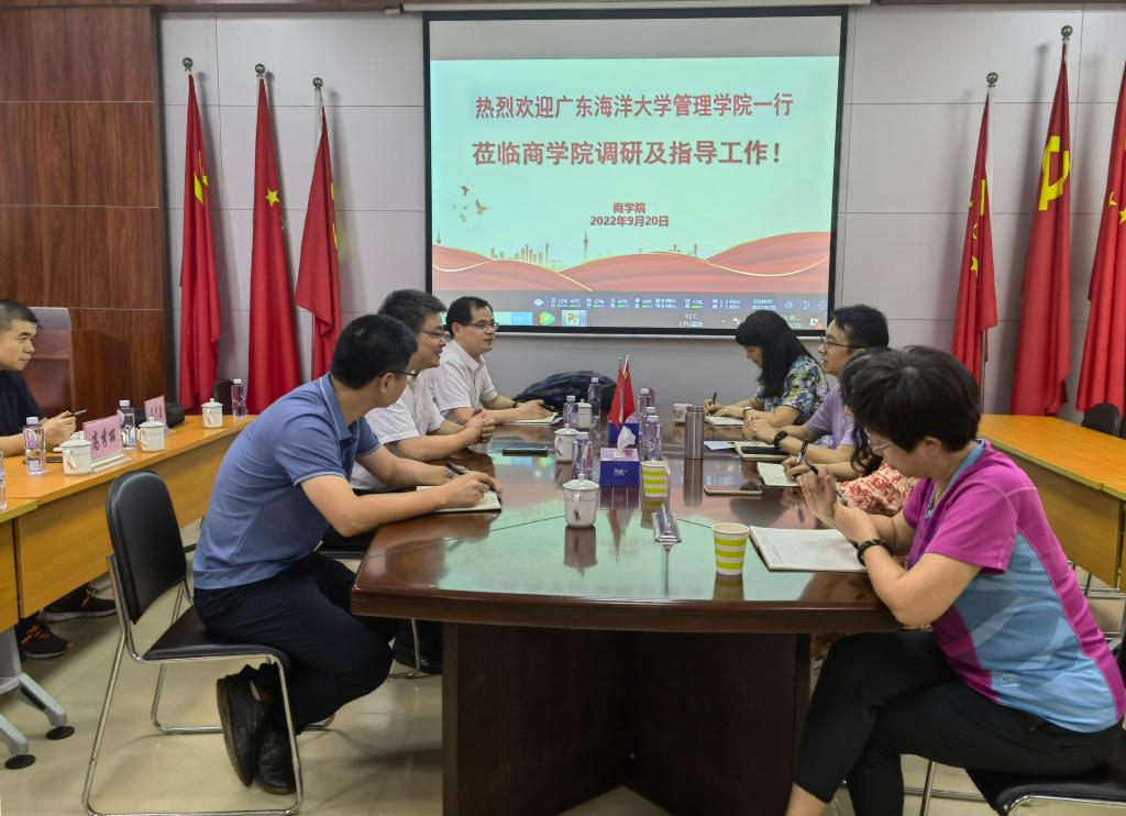 为加强专业建设,扎实推进本科专业评估工作,9月20日下午,管理学院党委书记李育芳、主持行政工作副院长杜军、党委副书记曾艳芳及学院办公室主任和各系主任一行到岭南师范学院走访调研。岭南师范学院商学院院长许抄军、地理科学学院院长薛书文、社会与公共管理学院领导,以及相关专业教师分别会见了一行并举行了座谈会。