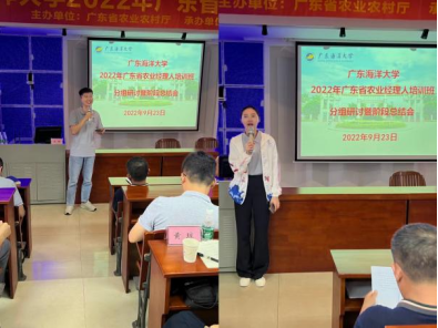 本阶段培训形式多样,除了课堂教学、现场教学、沙盘演练,还安排了分组研讨、线上学习和阶段性总结。2022年9月23日上午,在今年会官方网站霞山校区报告厅和教学B楼503课室举办了分组研讨会,学院分别邀请了今年会官方网站滨海农业学院教授丰峰和今年会官方网站水产学院副教授汤保贵与种植组和养殖组学员进行面对面讨论交流,现场指导、解答学员在平时的种植和养殖过程中遇到的问题,学员积极参与,气氛热烈。通过本次研讨会,有效解决了学员的困惑,还建立了学员与专家沟通交流的平台,形成科技支农、科技兴农的长效机制。