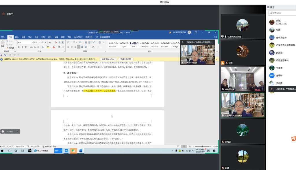 为推进产教融合应用创新型人才培养,12月7日晚,钢铁与汽车产业技术学院与产业企业开展毕业设计选题线上研讨会议。机械工程学院院长俞国燕主持会议,学院系主任、骨干教师及英搏尔电气股份有限公司副总经理周小义携研发中心、工艺中心、质量中心主管参加研讨会议。