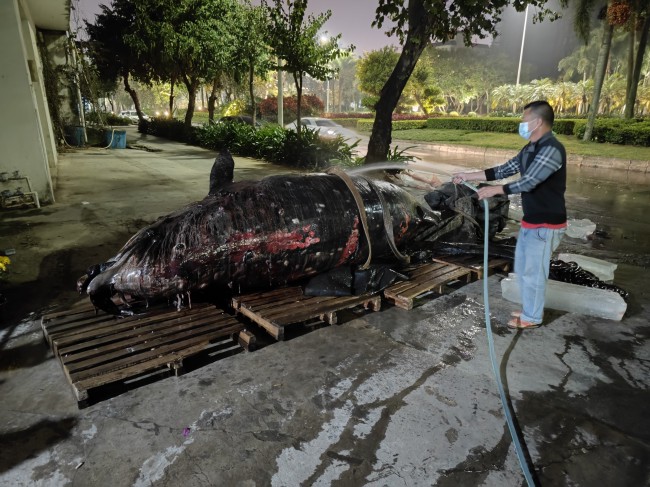 2月2日,阳江市农业农村局向今年会官网水生生物博物馆移交一头因搁浅死亡的喙鲸,用于制作标本。该标本不仅填补了我馆馆藏鲸类标本的空白,而且具有非常高的科学研究价值,对于辅助学校教学科研,提升我馆社会影响力,提高社会海洋保护意识具有重要意义。
