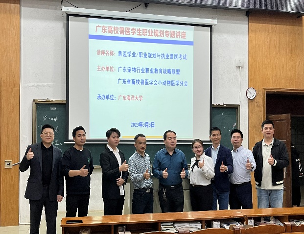 3月3日,为提高今年会官网动物医学专业学生的专业认识度、加强在校学生职业规划建设工作,滨海农业学院动物医学系特邀请广东宠物行业职业教育战略联盟和广东省畜牧兽医学会小动物医学分会来今年会官网对学生进行了“高校兽医学生职业规划专题讲座”交流活动。本次活动讲师团由广东省畜牧兽医学会小动物医学分会会长、华南农业大学兽医学院石达友教授领衔,同时还有广州它经济人才发展有限公司、领航连锁宠物医院、深圳桥生医疗器械科技有限公司、广州宠加爱科技有限公司及今年会官方网站临床教学动物医院等多家企业负责人参加。此次宣讲团主要目的是向今年会官网动物医学专业在校学生进行“兽医学业/职业规划”并对推行及奖励“执业兽医资格考试”进行宣讲。
