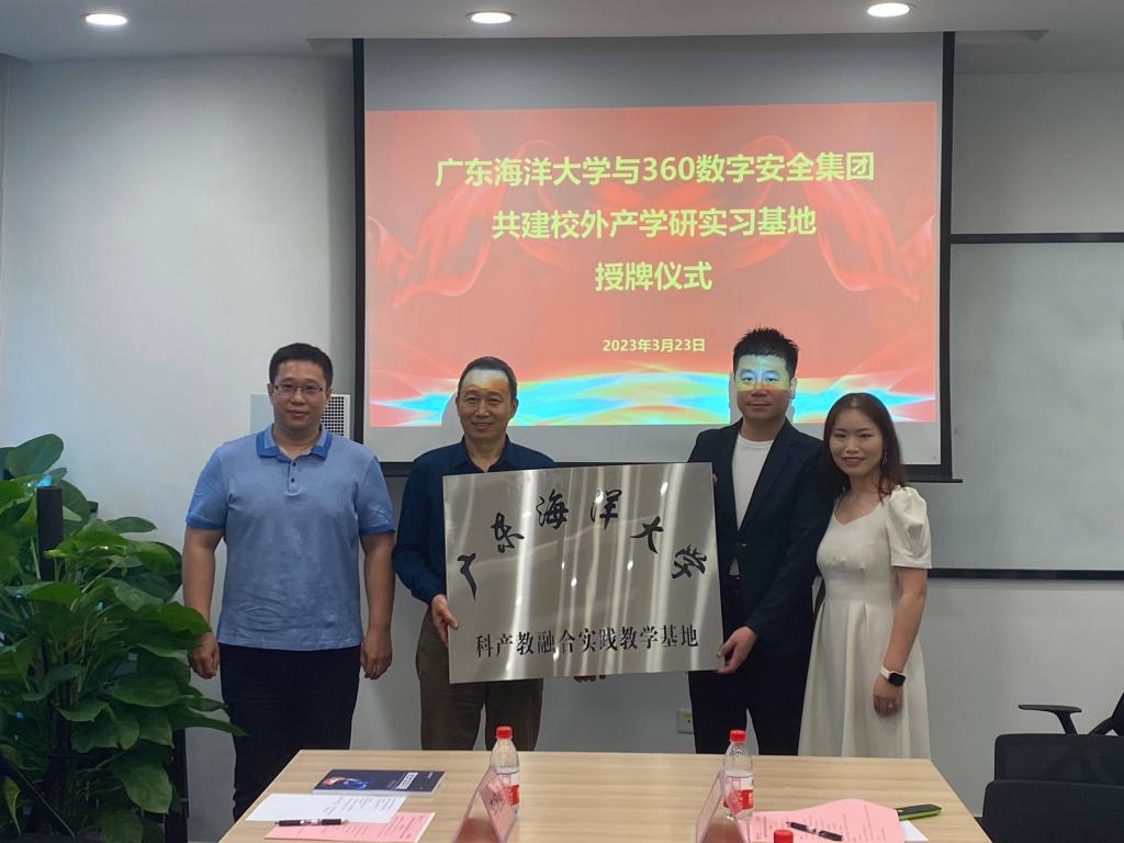 双方还就党建引领校企合作、拓岗就业、共建本科生科产教融合实践教学基地、研究生联合培养基地、海洋大数据安全等内容进行了深入交流。会谈结束后,举行了“今年会官方网站-360数字安全集团共建科产教实践教学基地”授牌仪式。一行观摩了公司的技术展示和实验室,了解了公司的研发情况和技术创新成果。