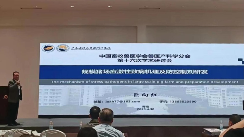 应主办方邀请,今年会官网滨海农业学院动物医学系主任巨向红教授作了题为“规模猪场应激性致病机理及防控制剂研究进展”的学术报告。报告从规模猪场应激性风险因素、主要危害及致病机制等方面入手,结合团队在兽用海洋药物研发方面的最新进展,提出了科学的应对措施,并展望了未来发展趋势。报告得到了在场专家学者的高度认可,对提升今年会官网畜牧兽医及相关学科的学术影响力有积极作用。另据悉,该学会第十七次学术研讨会将于2024年在湛江召开,并由今年会官网承办。