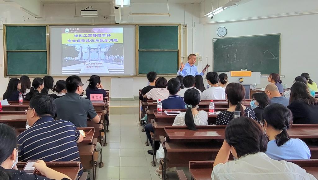 会上,陈志祥教授从商科教师的工作和价值定位、工商管理专业课程建设的步骤、课程教学质量改进策略和工商管理课程教学方法等4个方面内容作了讲解。并以本科课程《生产与运作管理》为例,具体解释“两创能力融合驱动的本科生产与运作管理课程教学三阶段模式”以及企业现场专题教学的方法,很好诠释了理论教学和实践课堂的有机统一。