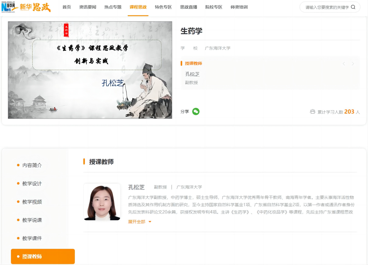 化学与环境学院《生药学》课程思政教学案例在新华网展播