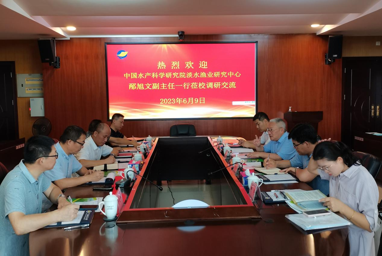 近日,中国水产科学研究院淡水渔业研究中心副主任邴旭文率该中心成果转化与技术推广处处长张成锋、副处长姜海洲等来校调研交流,副校长谭北平会见了邴旭文一行。