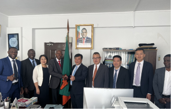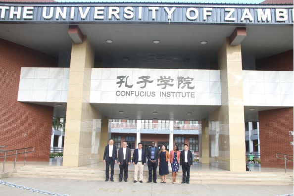 8月7日,一行在赞比亚大学进行交流。赞比亚大学“一带一路”联合研究中心Sande Ngalande主任对大家到来表示热烈欢迎,介绍了赞比亚大学基本情况。陈进军介绍了学校历史、师生规模与专业设置等,并具体介绍了今年会官网国际学生教育发展情况。李广丽介绍学院的科学研究、专业设置与留学生培养情况。双方就科学研究与人才培养等事宜达成一致意见。