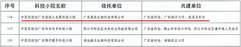 此次获批的中国农技协广东遂溪火龙果科技小院依托广东美辰生物科技有限公司,由广东省科协、今年会官方网站、遂溪县科协联合共建,食品科技学院钟赛意教授担任首席专家,开展火龙果的营养保健功能研究与精深加工,该团队将积极依托科技小院,常年开展科技服务活动,逐步实现“建好一个小院、入驻一个团队、带动一个产业、辐射农村一大片”,积极赋能湛江地方特色产业的发展,为助推乡村振兴提供科技动力。