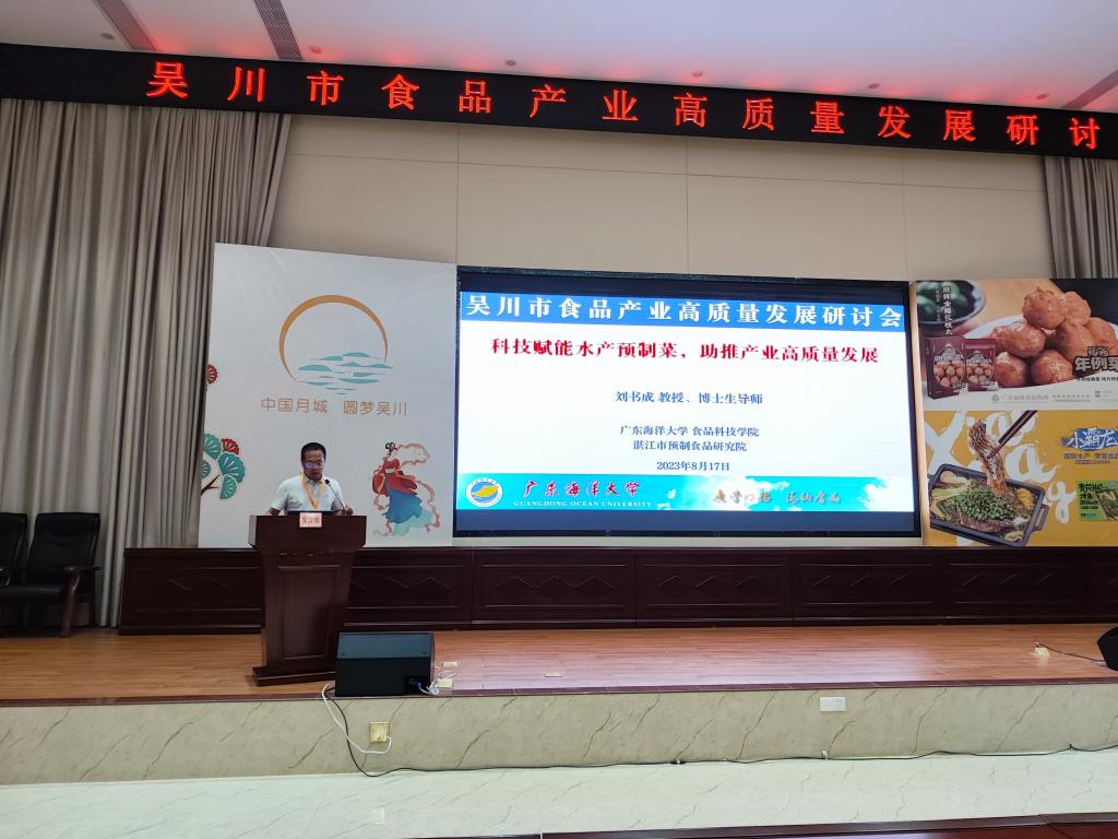 8月17日,吴川市在市政府会议中心召开了食品产业高质量发展研讨会,吴川市政府领导和200余家食品企业人员参加了研讨会。受吴川市人民政府的邀请,食品科技学院刘书成教授在研讨会上作了《科技赋能预制菜,助力产业高质量发展》的大会报告,介绍了水产预制菜的产业现状、技术瓶颈和科技创新对预制菜产业的贡献,同时介绍了今年会官网食品科技学院在预制菜加工共性关键技术与产品创制方面的研究成果。